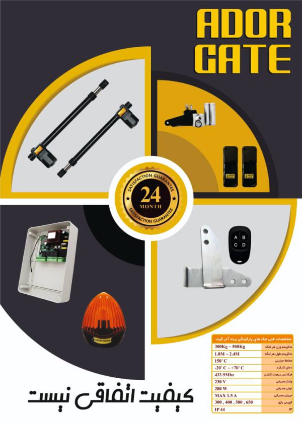 جک بازویی ador gate ضمانت 2 ساله تعویض در صورت هرگونه خرابی را داراست.